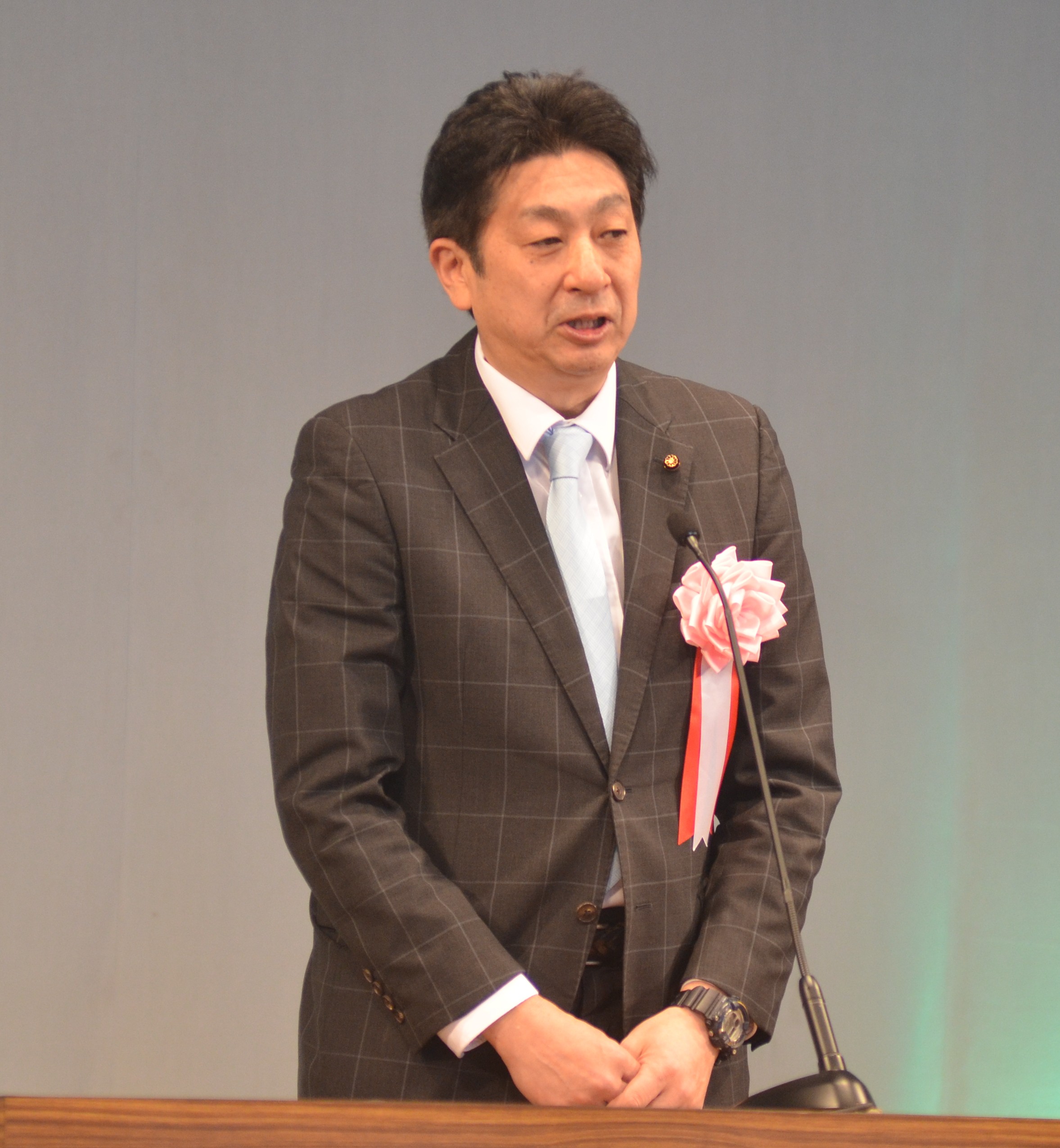 「明日は多くの参加していただいていますけれども、ボランティアの方も参加していただいております。参加される方全員が一体となって、大会を盛り上げていただければと思います。ランナーの皆さんは日頃の練習の成果をいかんなく発揮して、良い成績で完走されることを期待しております。また、市民の皆さんのご声援がランナーの背中を押す活力になりますので、ぜひご声援も併せてよろしくお願いします」(山﨑議長)