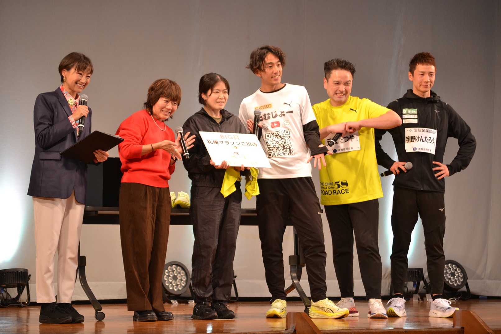 イベントの最後には、豪華賞品が当たる「BIGチャンス抽選会」が行われました。アスリートビブスのナンバーを記載して申し込んだ参加者からは、当選番号が発表されるたびに歓声が上がり、会場のボルテージは最高潮に。抽選会の盛り上げ役、げんき~ず、ランニング系YouTuberたむじょーさんの軽快な進行もあり、終始笑顔の絶えないイベントとなりました。