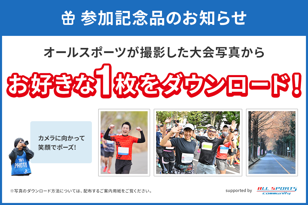 第58回大会よりジュニアロードレースの参加賞としてオールスポーツが撮影した写真を1枚、無料ダウンロードをしていただきます。